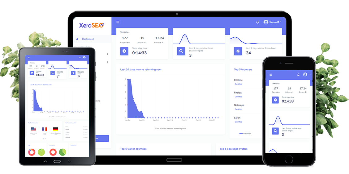 Visitor Analytics is one the key features of XeroSEO. You can analyze your own website`s informations.